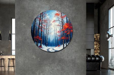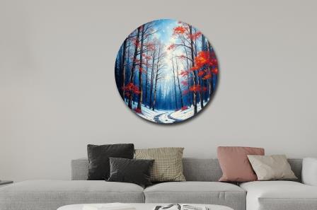 Das Bild spielt mit der Harmonie winterlicher Töne: zartes Eisblau und strahlendes Weiß bringen eine wundervolle winterliche Stimmung. Einige warme Farbakzente in Kupferrot bringen sanfte Spannung und lassen das Auge verweilen. Der Betrachter frag sich, wo der Weg wohl hinführt- ein Kunstwerk was neugierig macht.