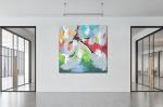 The high-contrast Action Painting: This choice of colors makes the artwork a real eye-catcher. The large-format action painting underlines the harmonious and exciting structure. The mix makes the look! This abstract modern work of art is skillfully combined with the gray-white-black color patches that have been created in advance on the large canvas with fine and coarse structures.